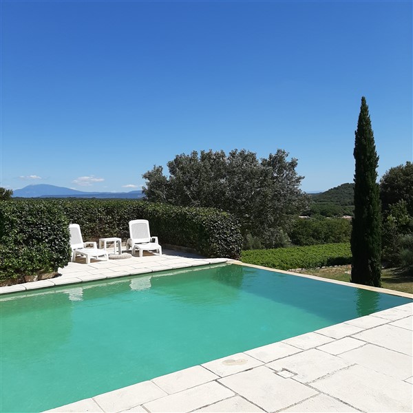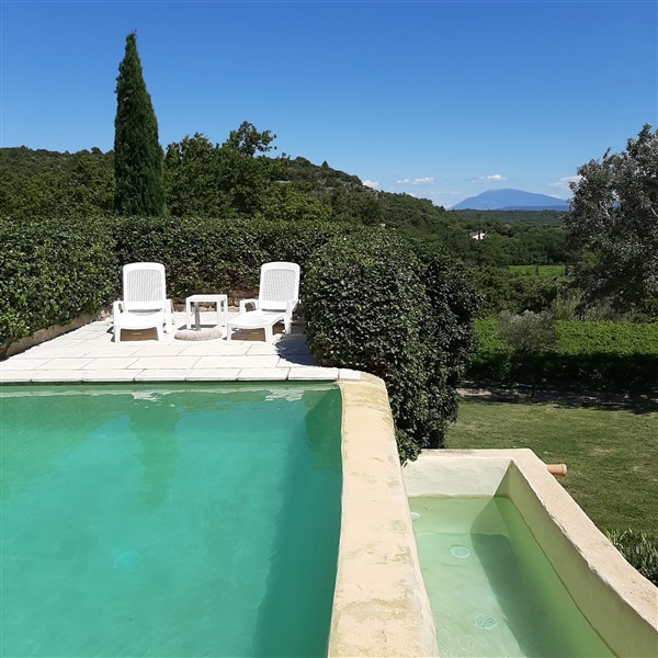 En été, profitez de la piscine à débordement et de son jacuzzi avec vue sur la campagne, la forêt, le Mont Ventoux et les dentelles de Montmirail.